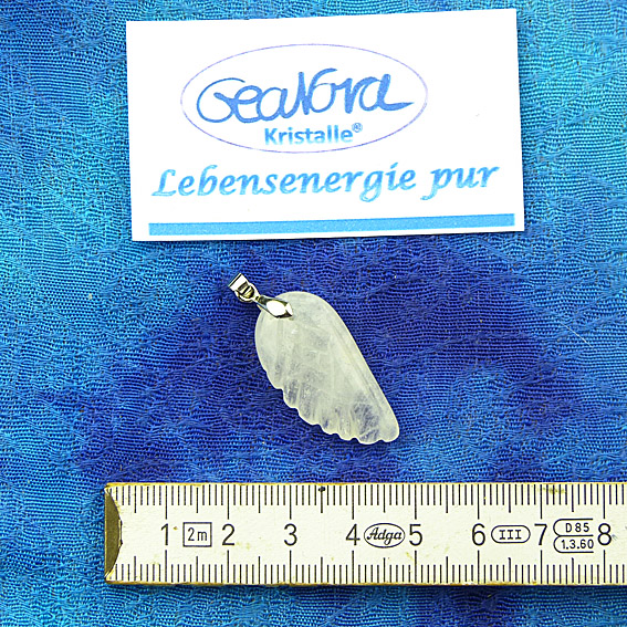 Ein handgefertigter Kettenanhänger aus einem natürlichen GeaNova-Kristall® in Form eines Engelsflügels – ein Symbol für Schutz, Leichtigkeit und Verbundenheit.