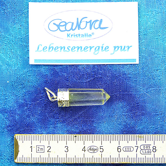 - Gesamtlänge Kristall ca. 3,0 cm – Länge mit Öse 4,2 cm – Breite ca. 0,9 cm